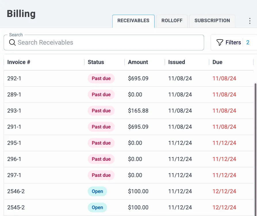 Bill one-time rentals, recurring service, and add-ons on your schedule, with ad-hoc invoices available anytime
