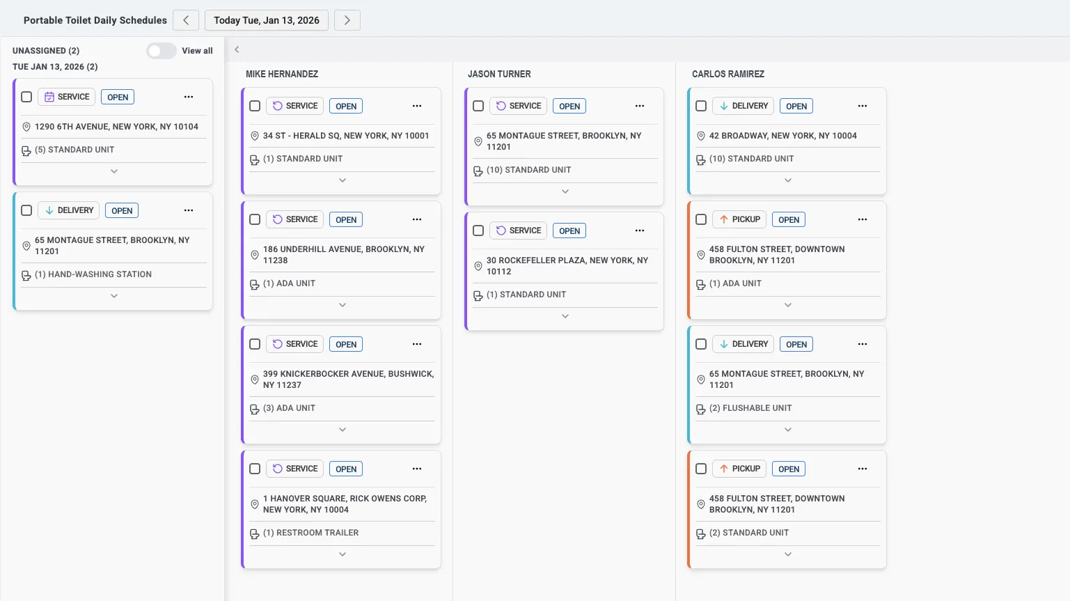 Manage short-term, recurring, and long-term porta potty rentals in one system and adjust services as needs change